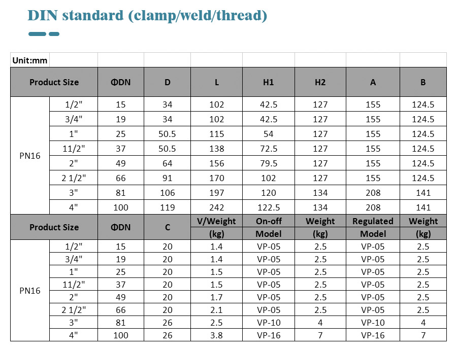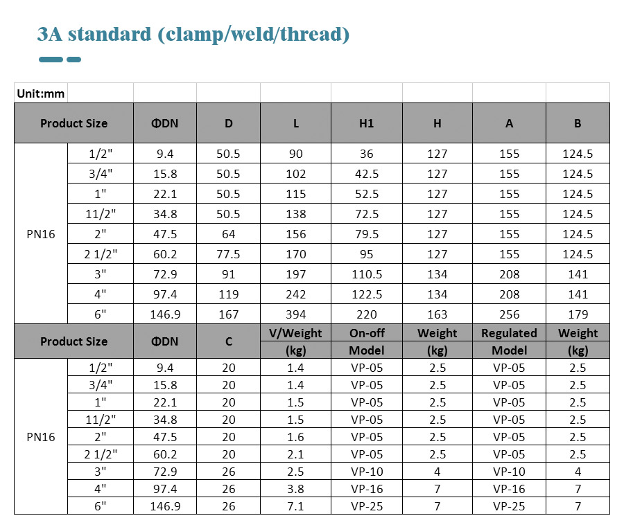 6 、 Precisão do produto: em conformidade com 3A, DIN, SMS Standard.