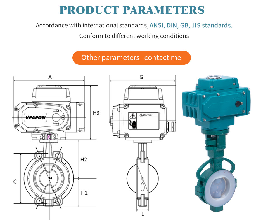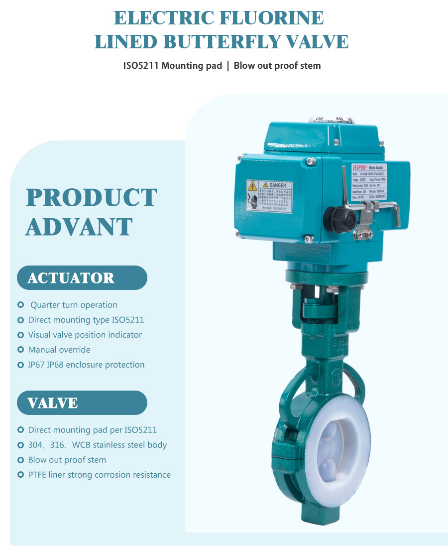 Válvula de borboleta forrada totalmente fluorina elétrica