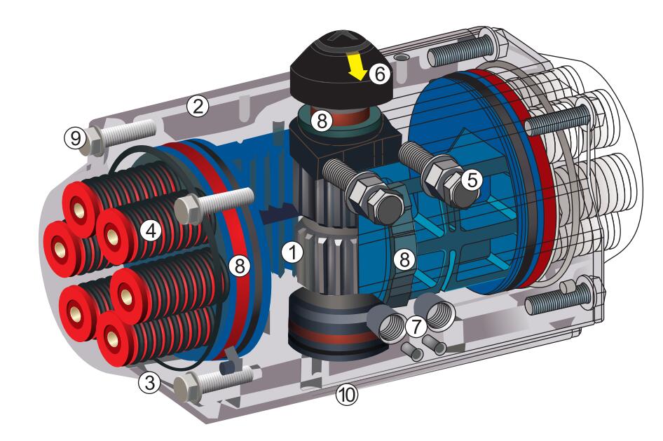 1 、 Rack de pistão dual e design de pinhão da estrutura simétrica, com ação rápida e suave, alta precisão, alta potência de saída. A rotação reversa pode ser realizada simplesmente alterando a posição de montagem dos pistões.
