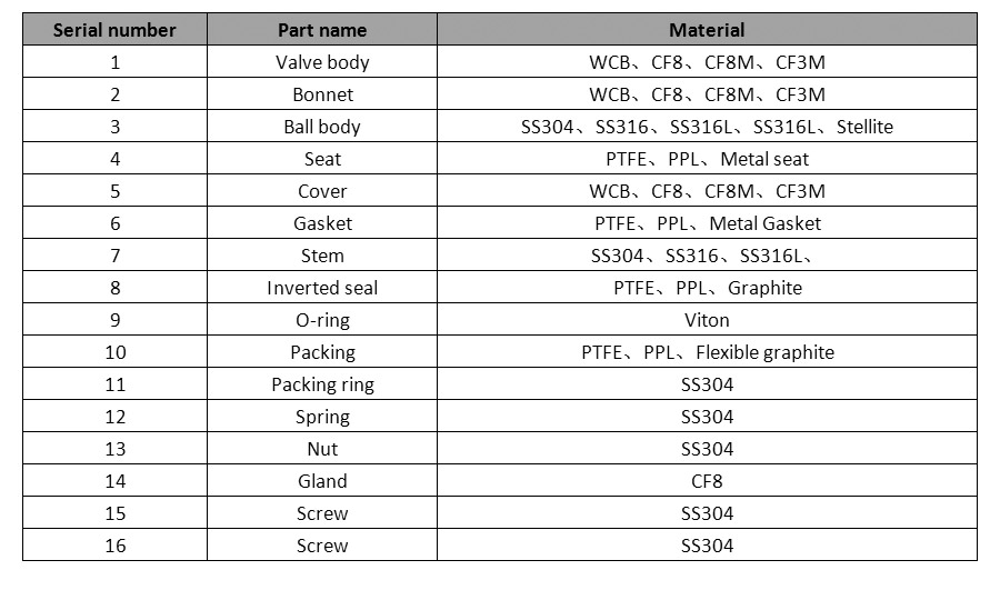 Material da válvula e bola: CF8, CF8M, CF3M, WCB, 2205
