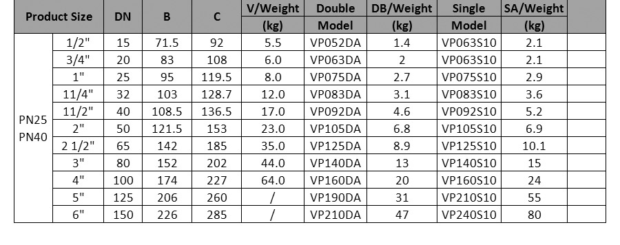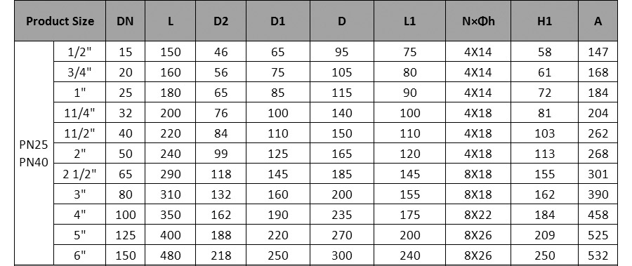 Diâmetro nominal: DN15-DN200 (1/2 '-8 ')