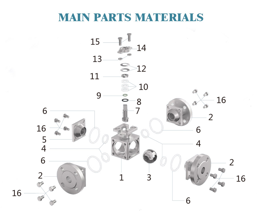 3 、 Material de aço inoxidável: o material do corpo da válvula é de aço inoxidável, não é fácil de vazar, bom desempenho de vedação e torque de comutação mais leve.