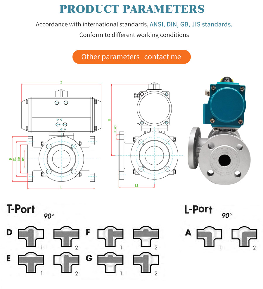 Parâmetros básicos para válvula de esfera flangeada pneumática de 3 vias: