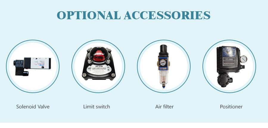 As válvulas de esfera pneumáticas são classificadas por material: aço inoxidável, ferro dúctil, aço carbono, válvulas de esferas pneumáticas plásticas, etc. O tamanho da válvula geralmente é de DN8-DN100 (1/4 '~ 4 '), a pressão é classificada como 1000 wog, 150l, 300lb, 600lb.