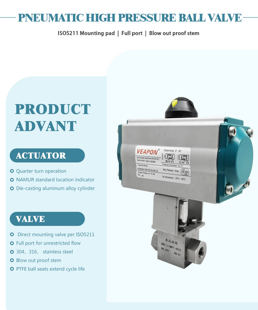 A válvula de esfera de alta pressão pneumática é alimentada pelo ar comprimido, a haste da válvula aciona o carretel no corpo da válvula para girar 90 ° pode obter uma ação totalmente aberta - totalmente fechada. O produto é dividido em selo de metal e vedação macia de acordo com o desempenho de vedação. Possui haste de válvula de embalagem dupla de viton, processamento de precisão de nível nano europeu, encontre-se com o padrão de proteção contra incêndio API607, estrutura compacta, pequeno volume, operação confiável, boa vedação, fácil manutenção, fácil instalação, forte adaptabilidade e vazamento zero etc.