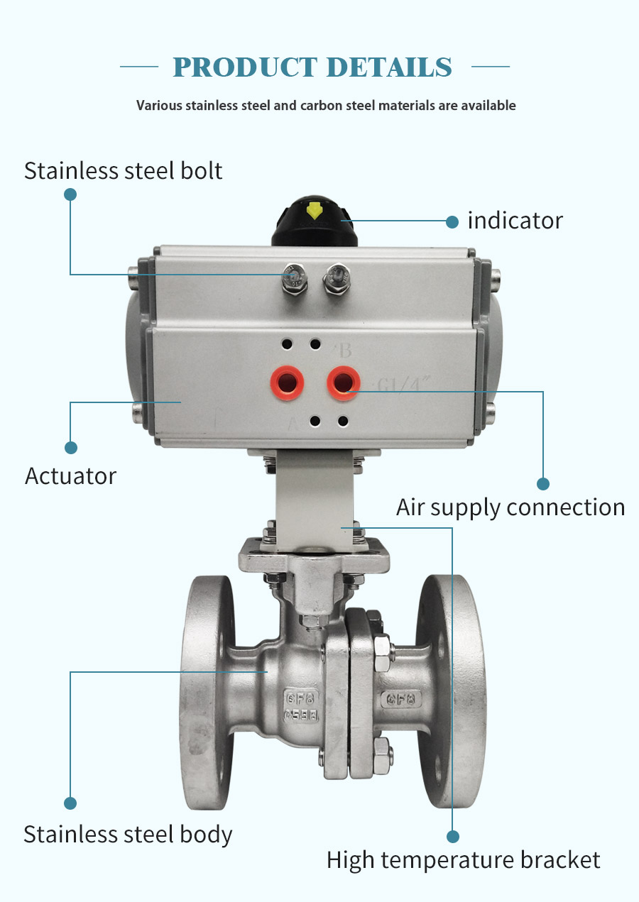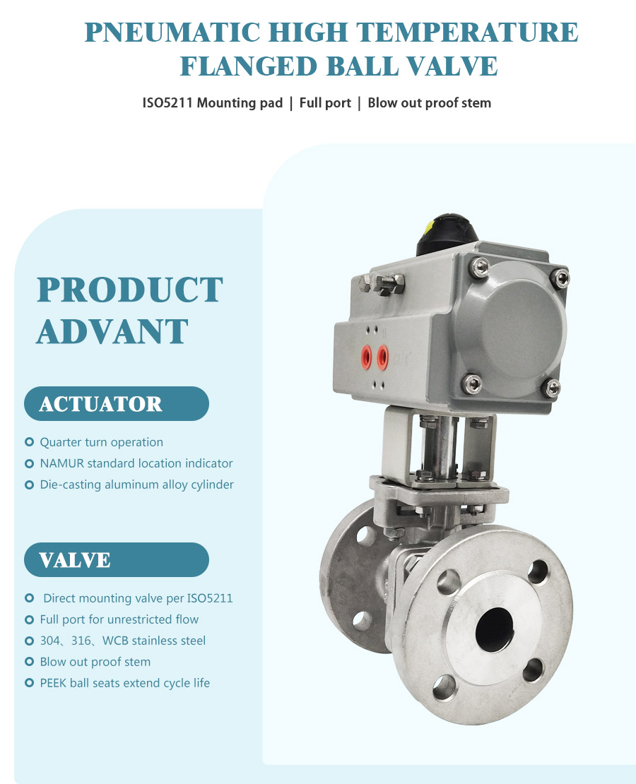 Recursos de projeto de válvula de esfera de flange de alta temperatura pneumática: Recursos: