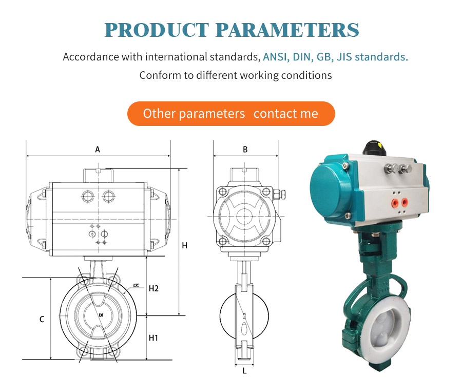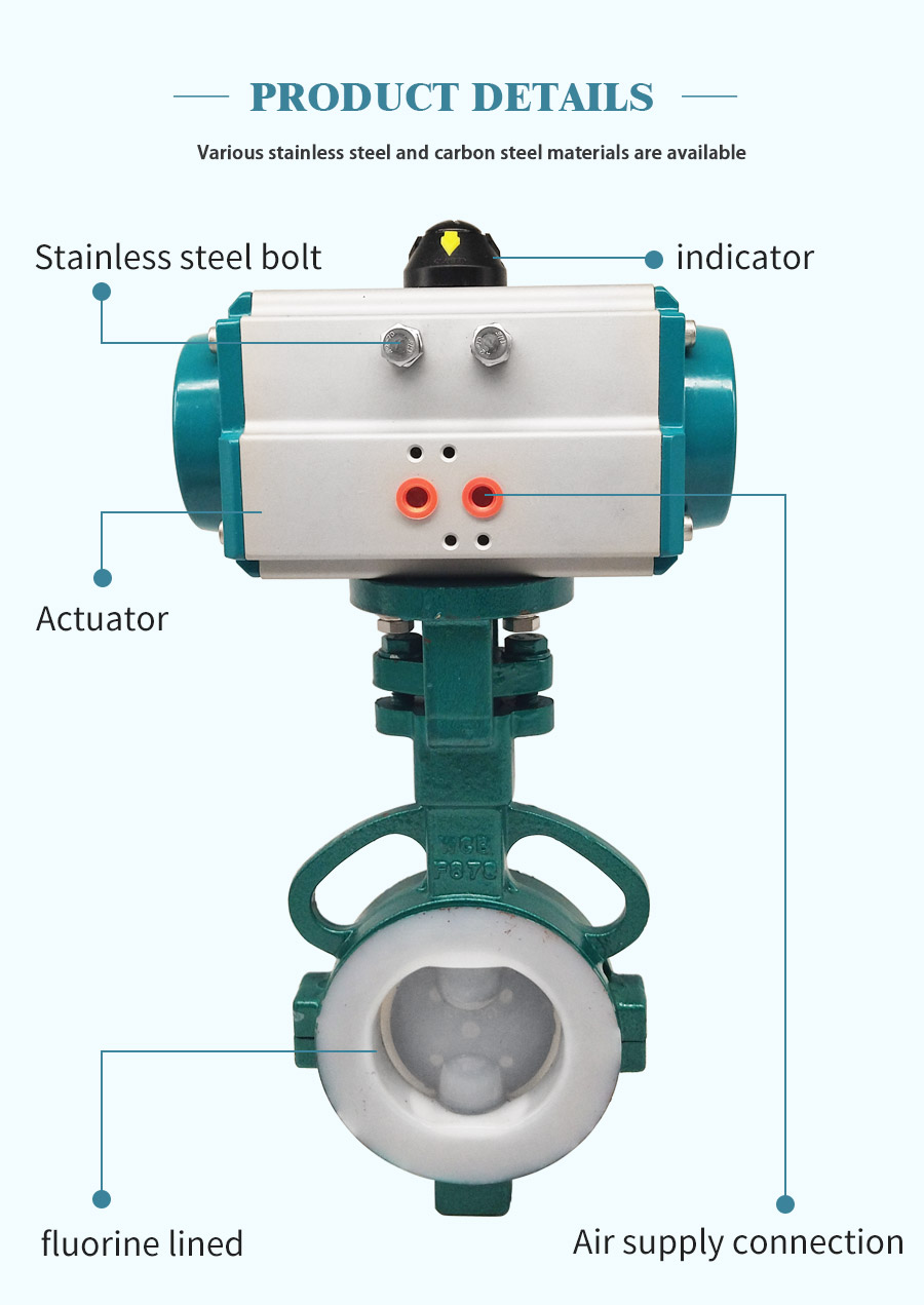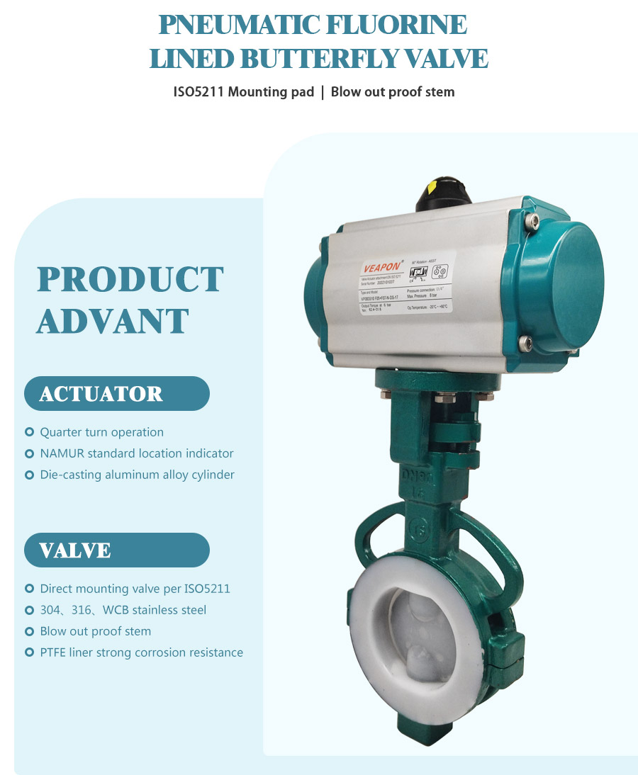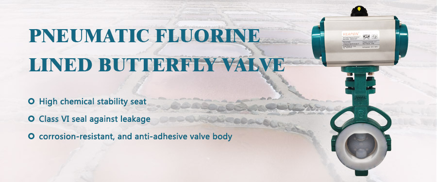 Válvula de borboleta forrada pneumática totalmente fluorina