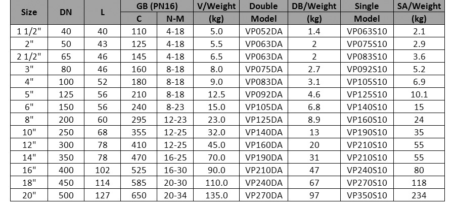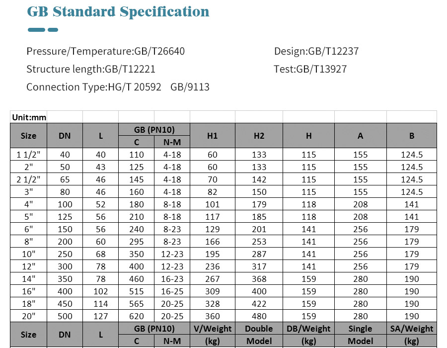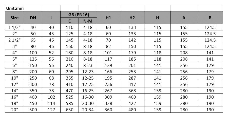 Tamanho DN: DN40-DN500 (11/2 '~ 20 ')