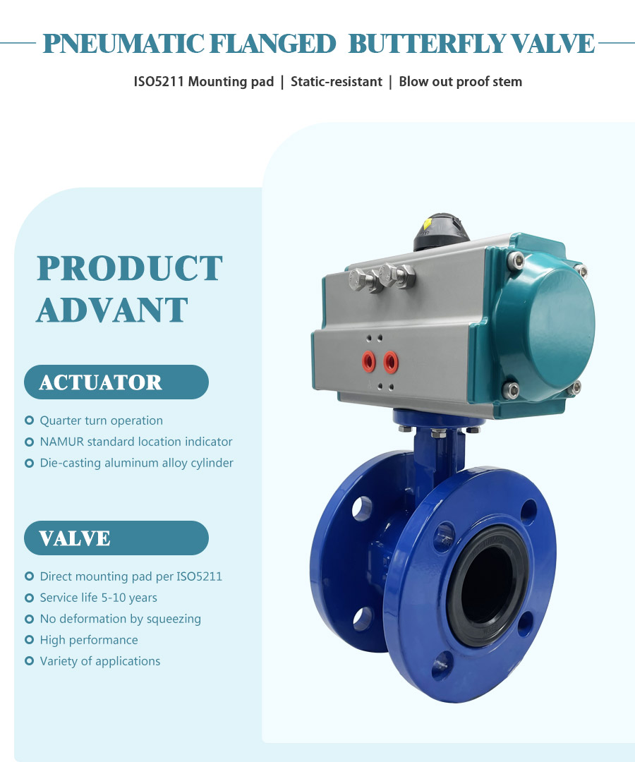 A válvula borboleta flangeada pneumática é adequada para temperatura de cerca de 120 ℃, pressões nominais 1,6MPa de indústria de alimentos, farmacêutica, indústria química, petróleo, energia de eletricidade, têxtil, fabricação de papel e outra regulação de líquido/gás.