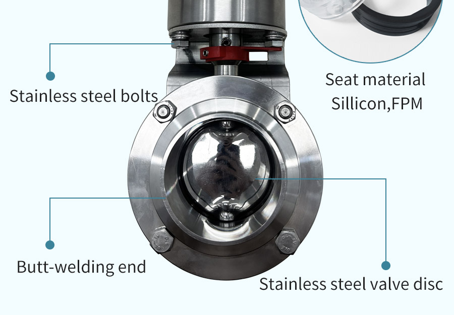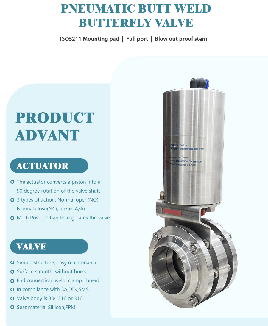 A série desta válvula é uma espécie de válvula de borboleta pneumática sanitária, que é amplamente utilizada no sistema de tubulação de aço inoxidável para controlar e regular o fluxo médio.
