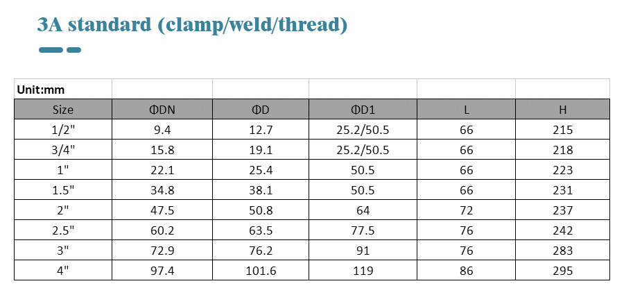 Padrão: 3a, DIN, SMS, IDF, ISO